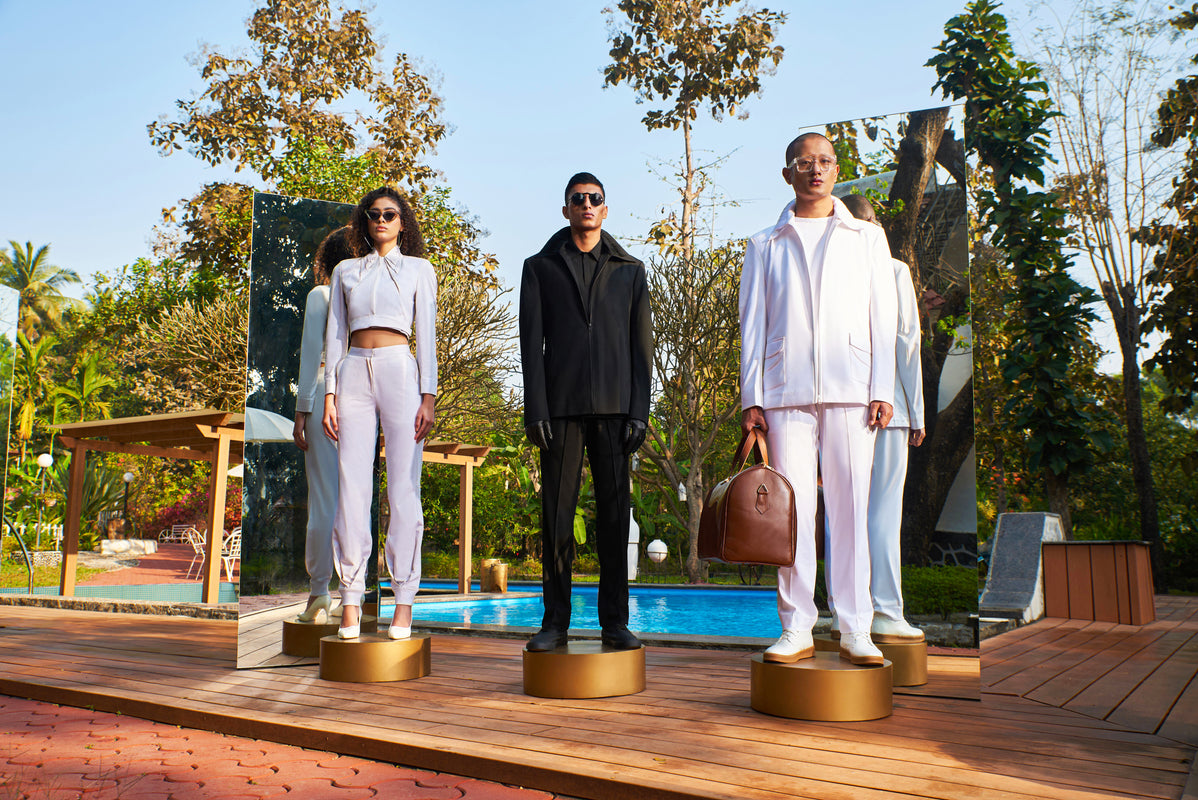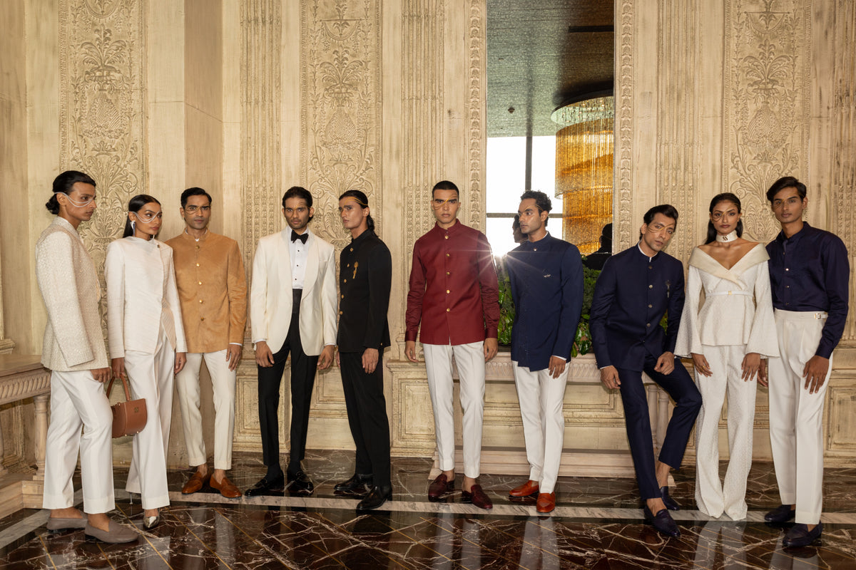 From its nascence, the Sarah & Sandeep philosophy has been about innovation and creating future-forward fashion for the au courant individual. Each Sarah & Sandeep design is a thoughtful blend of new-age design techniques with traditional, bespoke tailoring standards, bringing each garment the highest possible quality and fit. With a focus on geometric patterns, the inherent personality of the cloth is given a new dimension through the manipulation of fabric and weave.