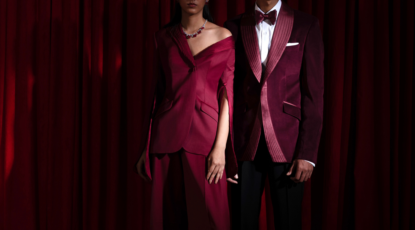 Sarah & Sandeep styles are crafted through a meticulously thought-out design process. With the perfect synergy of aspiration and power driving them, each design represents the designers’ conceptualisation of formal wear of the future. Through studying & working with the best fabrics in the world, Sarah & Sandeep aim to explore the undiscovered worlds of contemporary clothing through geometry, one silhouette at a time. Sarah & Sandeep are more than just designers – they are visionaries.