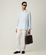 Blue Stripe Shirt with Mandarin Collar & S-Chest Pocket