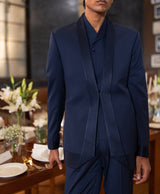 Navy Blue Open Tuxedo With Concept Satin Twist Lapel And Cuffs
