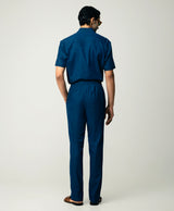 Dark Blue Denim Concept Lapel Collar Half Sleeve Shirt With Relaxed Drawstring Trouser