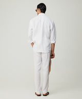 White Linen Shirt With Mandarin Collar & Cross Pintucks Paired With Relaxed Drawstring Trousers
