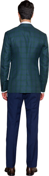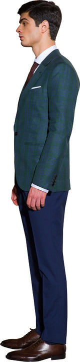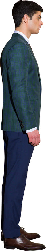 CB Canvas Dark Green Blazer & navy checks 1 button blazer with wide Fish mouth lapel