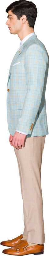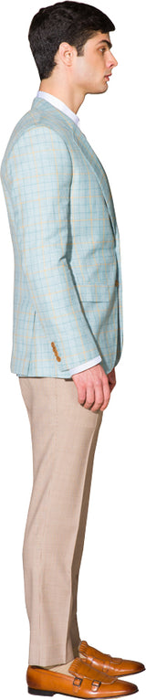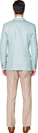 CB Canvas Light green & beige checks 2 button blazer with box pleat at the back