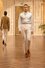 Aqua blue pintucks straight yoke shirt with pintucks & line embroidery