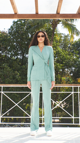 CONCEPT MINT ATHLEISURE ENSEMBLE WITH MANIPULATED LAPEL.