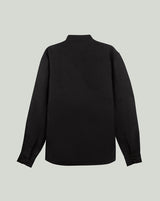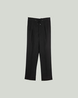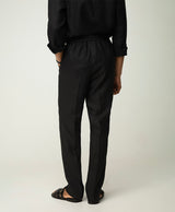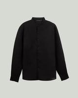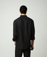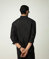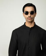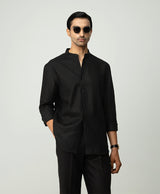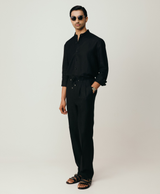 Black Linen Shirt with Mandarin Collar & S-Pintucks with Relaxed Pleated Drawstring Trousers