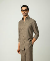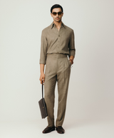 Taupe Slub Classic Full Sleeve Shirt With Taupe Double Pleat Manny Trouser