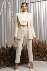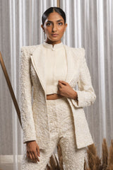 Pearl Beaded Ivory Embroidered Jacket & Pintucked Cropped Bandhgala with Pearl Beaded Trouser.