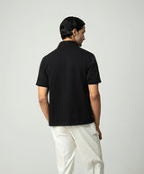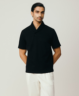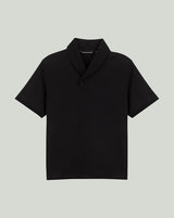 Black Shawl Collar Knit With Pintucks On Collar