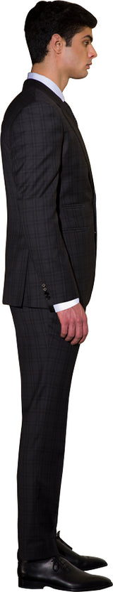 CB Canvas Charcoal 3pc suit with self checks & mid grey micro checks DB waistcoat 1"2 with curved hem