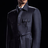Italian Bamboo Charcoal Grey Safari Jacket Ensemble with S Curved Pintuck Belt