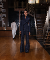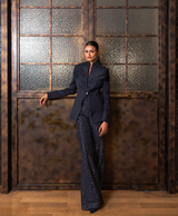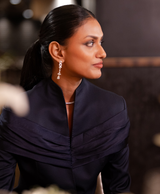 Navy Blue Bandgala Jacket With Attached Front Pleated Drape &Amp; Silver Ornamental Button