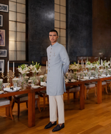Sky Blue Glitter Classic Long Bandgala With Cuffs