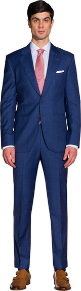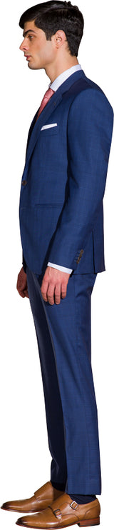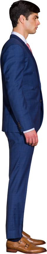CB Canvas 2pc Suit Cobalt blue & navy windowpane checks with contrast buttonhole