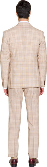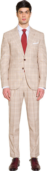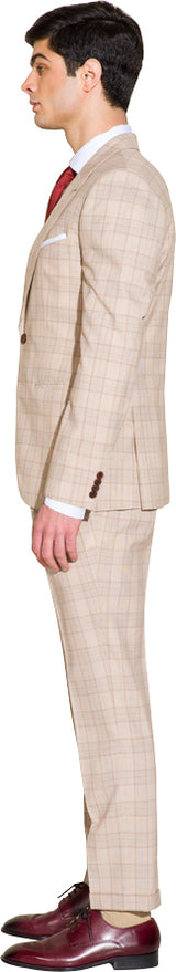 CB Canvas 2pc Suit Cream & light brown glen checks with wide peak lapel