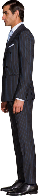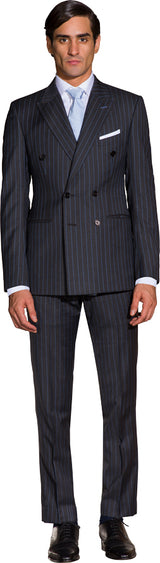CB Canvas DB 2*6 2pc Suit Mid grey with blue pin stripe & contrast buttonhole