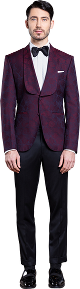 An artisanal luxury that thrives over time, such is the Red floral patterned Tuxedo with our signature shawl lapel. The red tuxedo set is an art based out of fine attention to design details and pure Italian bespoke construct.