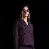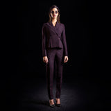 Burgundy Half Canvas DB Peplum Wool Suit Ensemble with Pleated Cuffs & Pocket Flap