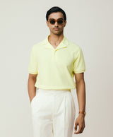 Yellow Resort Collar Knit With White Piping On Collar