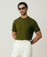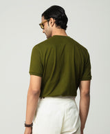 Olive Green Round Neck Knit With Overlap Detail & Neck & Sleeve Hem