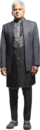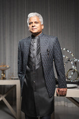 Charcoal Grey Embroidered Bandhgala & Bamboo Pleated Kurta with Centre Pintucked Charcoal Grey Trouser.